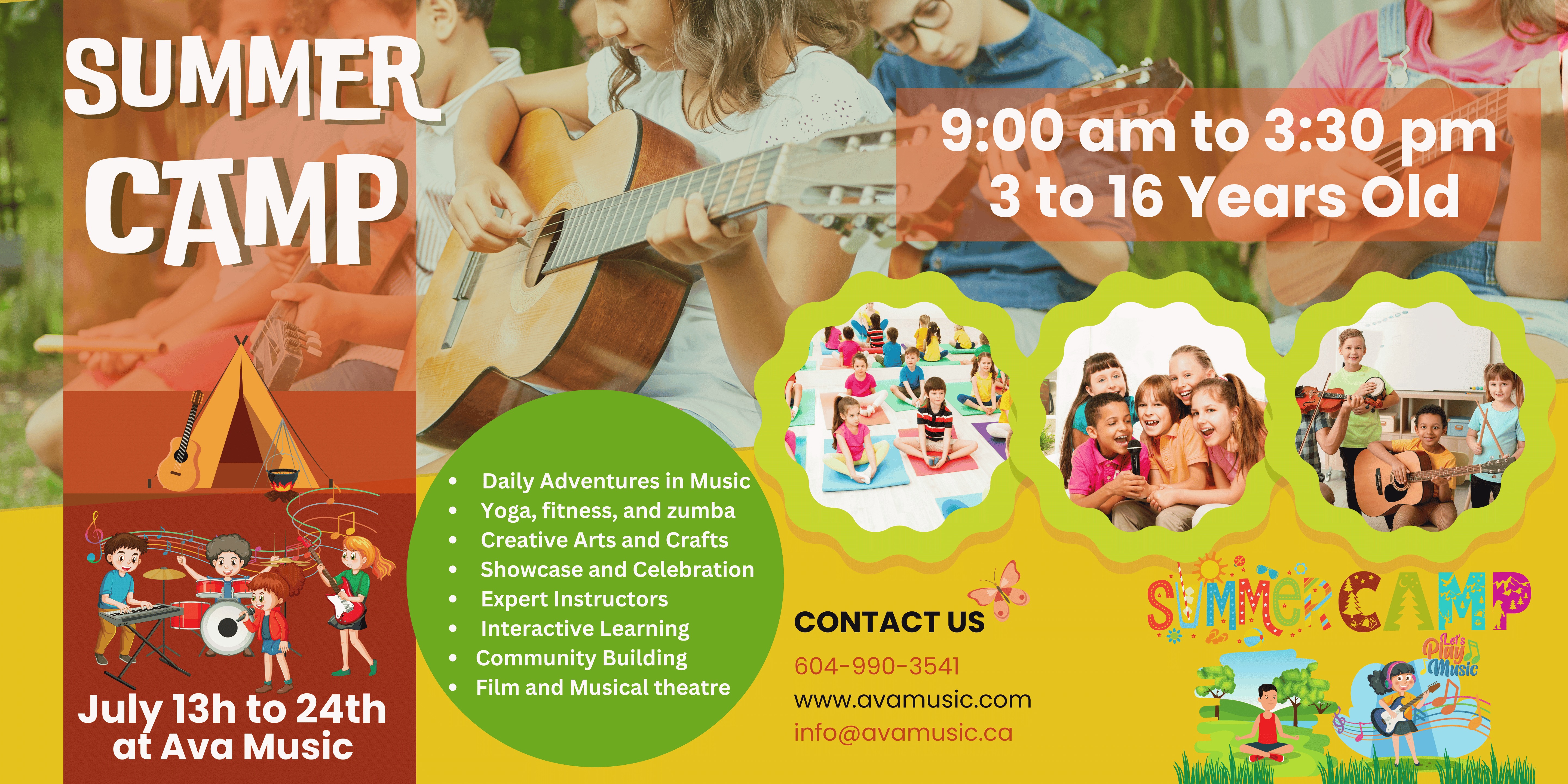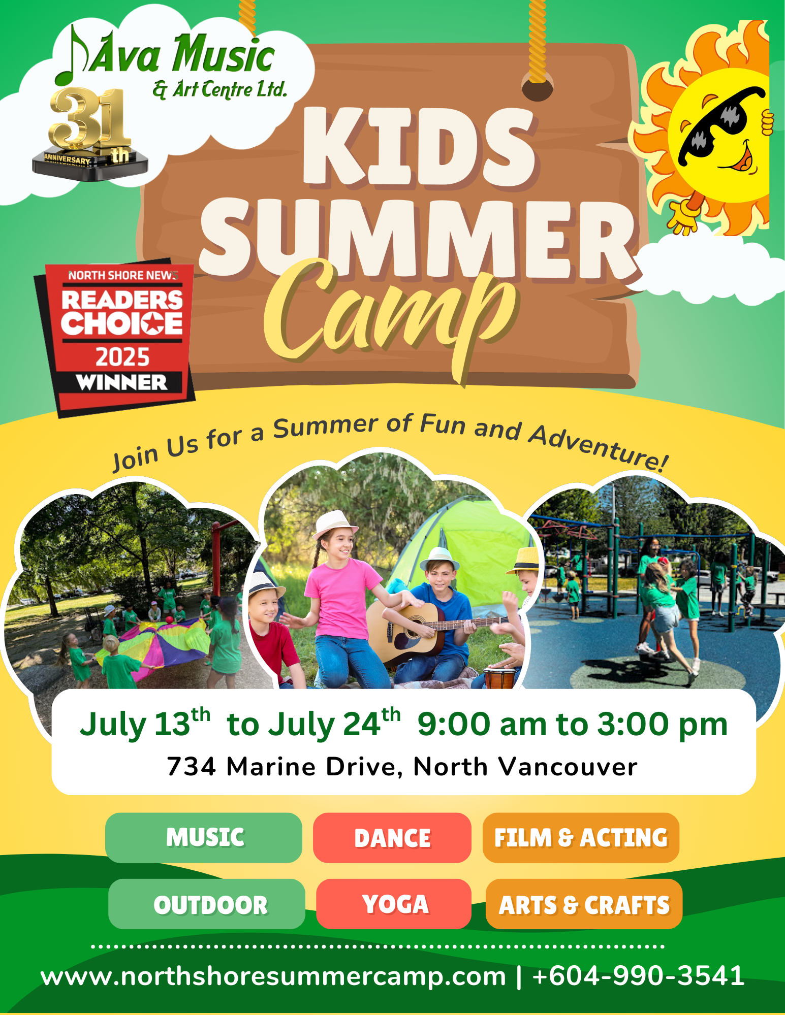 In the summer of 2000, the renowned Ava Music & Art Centre Ltd. Summer Camp made history as the first music school to introduce a professional, arts-based, interdisciplinary camp to the North Shore community. Over the years, our summer camp has earned global acclaim for its diverse array of programs, with a primary focus on enabling campers to explore four fundamental domains of study: Music, Art, Dance, and Film. We offer both half-day and full-day camp options.